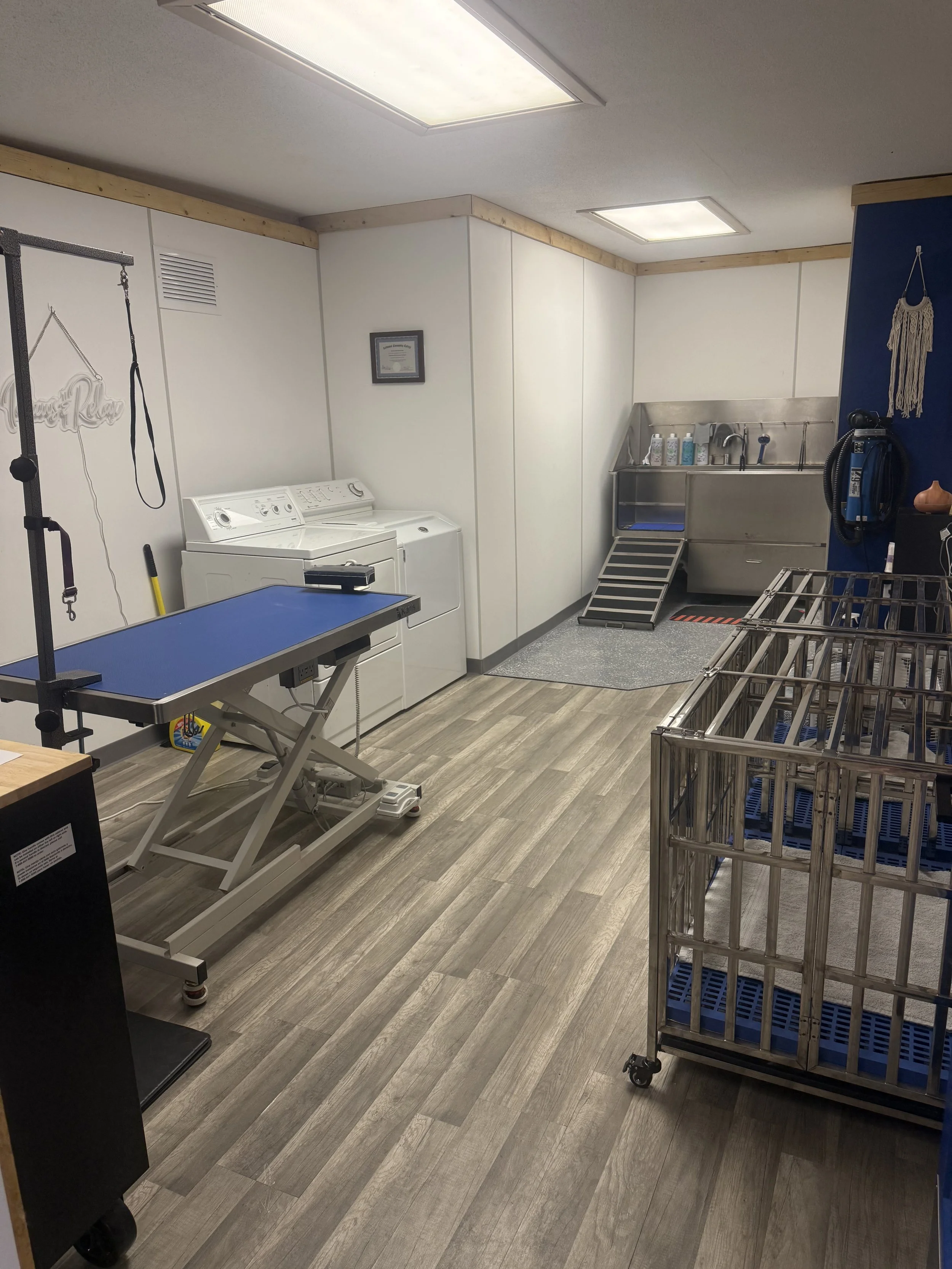 At Blue Ruff Pet Lodge, grooming services are available on-site through Paws & Relax, offering breed-standard haircuts, complete baths with brush-outs, nail trimming, ear cleaning, facial scrubs, and more. If your pet is staying with us, we can align the grooming appointment with their stay for your convenience. (See Grooming tab for additional information and pricing)