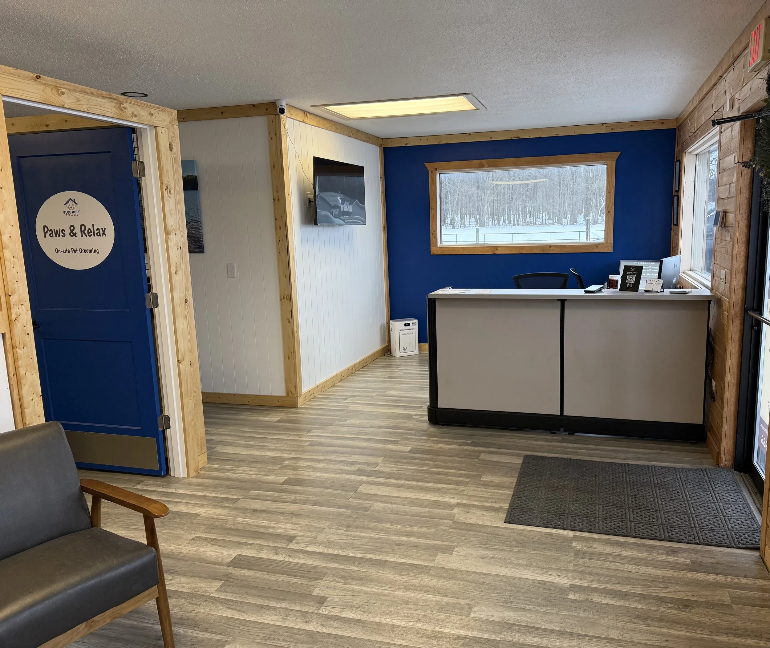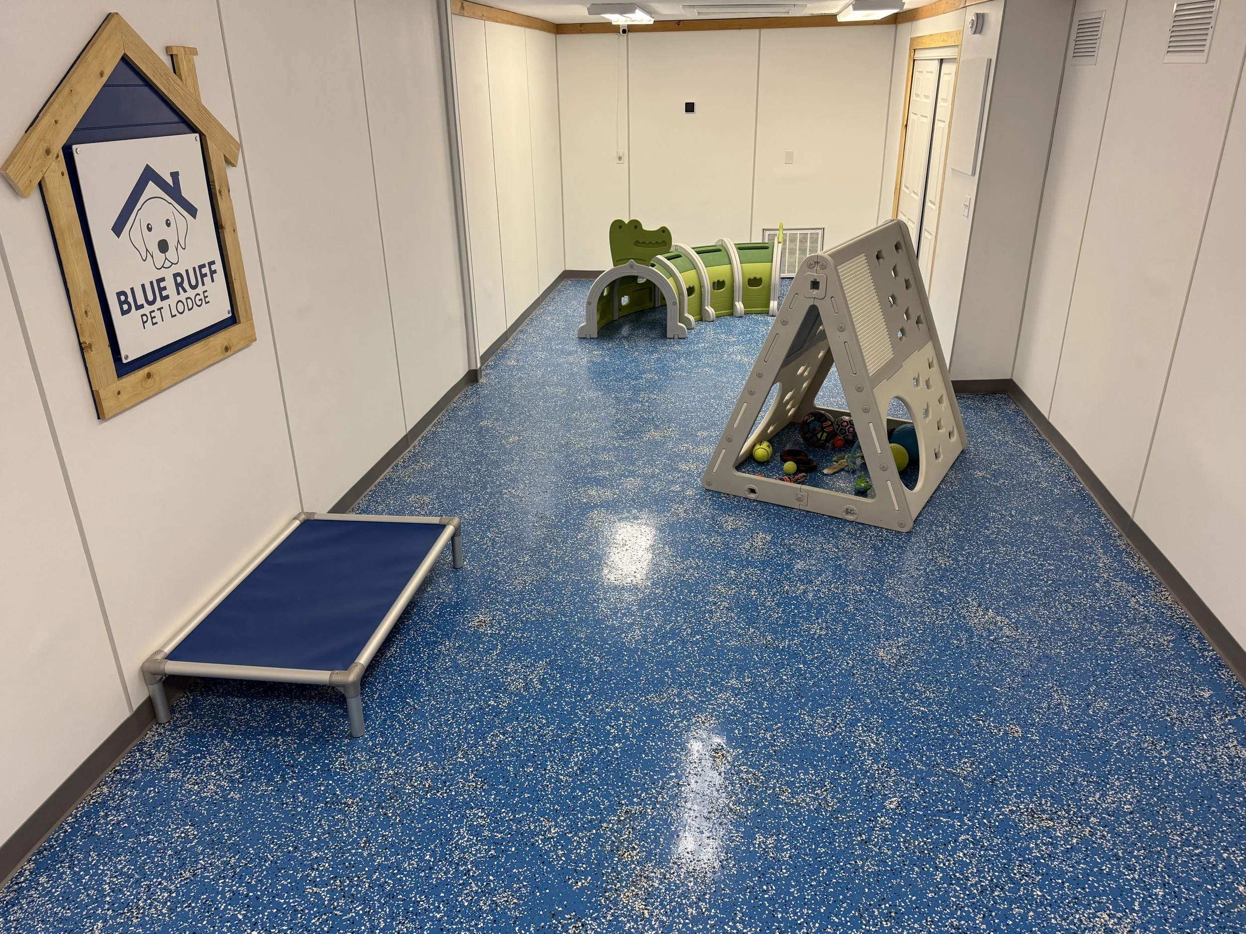 At Blue Ruff Pet Lodge, we’ve designed our facility with comfort, safety, and fun in mind. We have established spacious indoor and outdoor play areas, cozy climate-controlled lodging, and a 24/7 camera monitoring system. Also, we offer multiple kennel suite types to fit individual needs and custom cat condos for low stress time away from home. Additionally, with an on-site professional grooming studio, by Paws & Relax, you are able to take advantage of scheduled appointments for grooming services or conveniently add on these services during your pet’s next stay